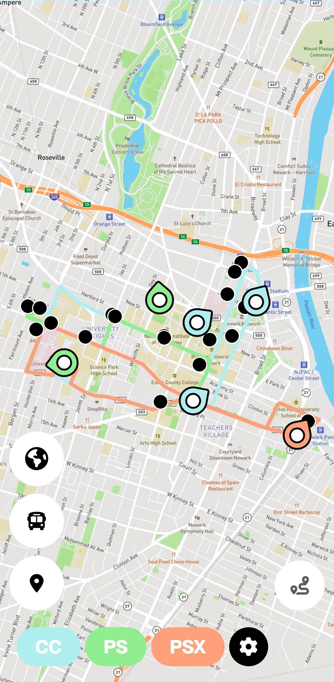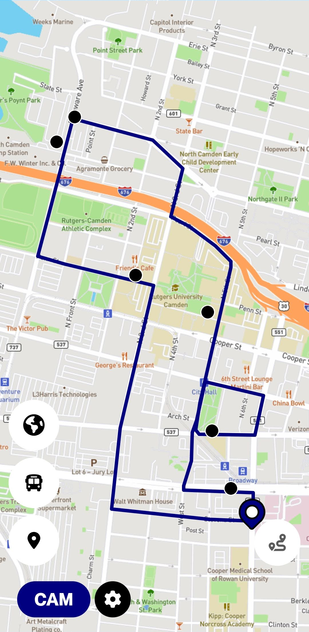 • Calculate walking distance and time to your nearest stop